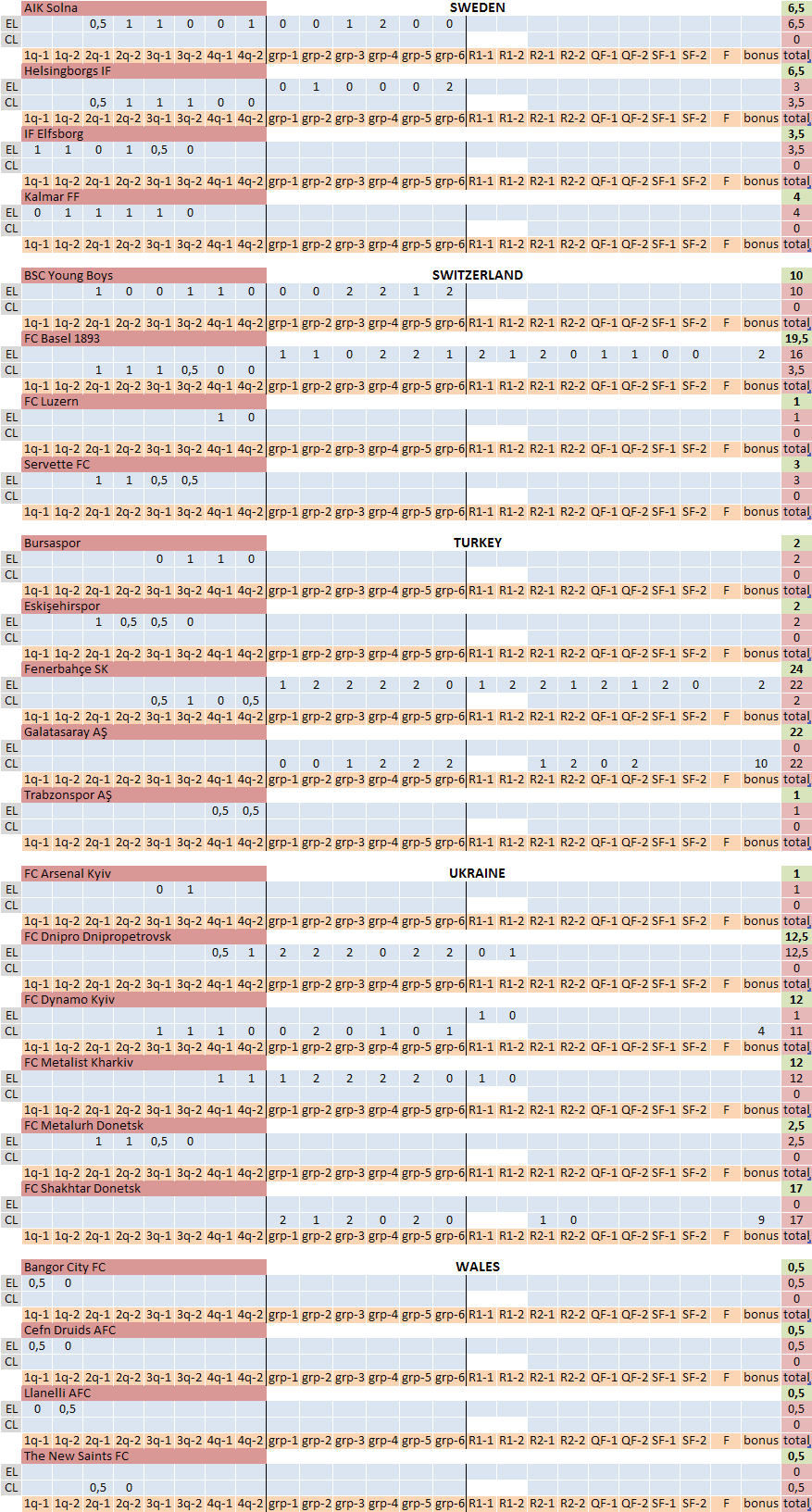 UEFA Country and Club Coefficients