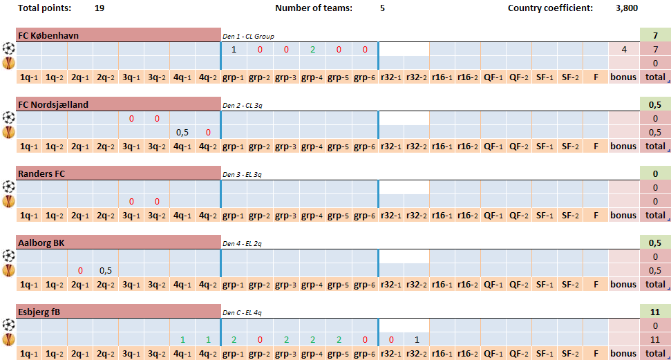 You can use this table also for coefficient details of UEFA Club Ranking as there are only minor differences in counting. For more info about calculations click here.