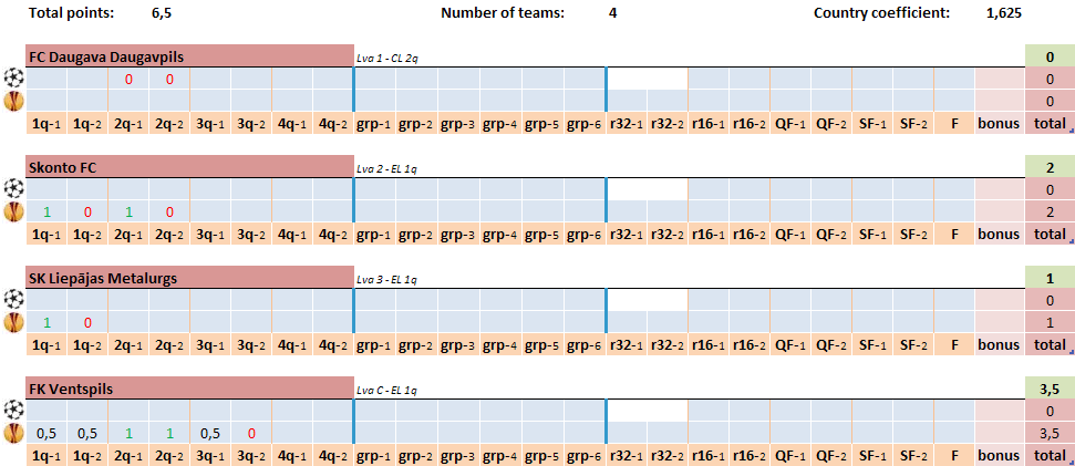 You can use this table also for coefficient details of UEFA Club Ranking as there are only minor differences in counting. For more info about calculations click here.