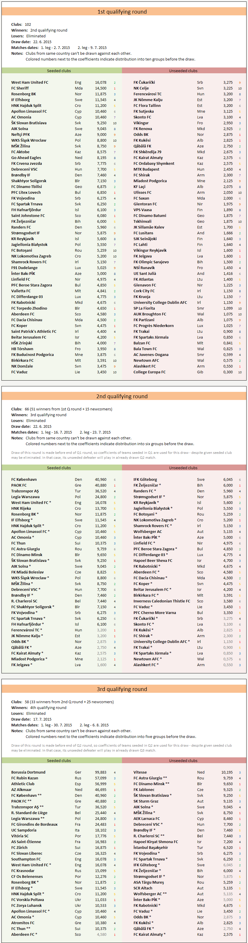 1. Listed seeded club is eliminated = all clubs with lower coefficient are moved up in seeding for the draw of following rounds (there are exceptions in 2nd Q and 3rd Q rounds, more info below).